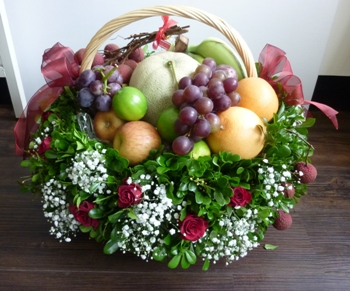 花禮內容;七種水果-(當季水果搭配),玫瑰花等