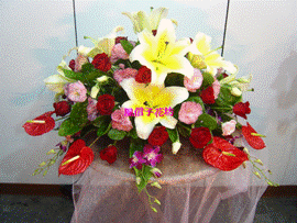 花材:百合.玫瑰花.火鶴.桔梗.石斛蘭規格:60cm*35cm